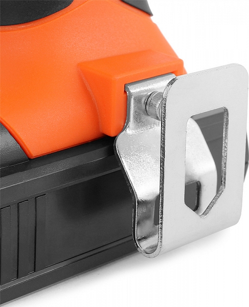 - Съемная скоба, позволяющая закрепить, например, на ремне, располагается в нижней части рукоятки у самого аккумулятора