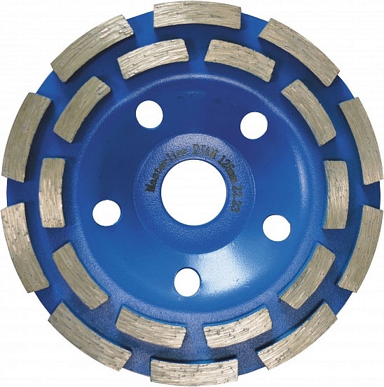 Алмазная чашка по бетону для болгарки Diam FAT-S MasterLinee (Диам ФАТ-С МастерЛайн) с двухрядным расположением сегментов для ручной обработки бетонных поверхностей, кирпичной кладки, строительных блоков. Применяется на ручном электроинструменте без охлаждающей жидкости.