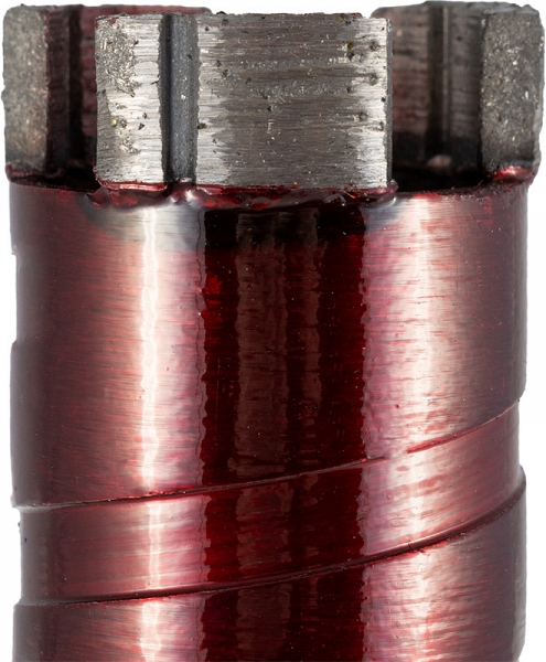 Алмазное сегментное сверло для сухого сверления с микроударом Diam Extra Line Titan Hit 32 мм (Диам Экстра Лайн Титан Хит 32 мм) предназначено для сухого алмазного бурения, в том числе и с микроударом, отверстий Ø 32 мм на сверлильных машинах / дрелях с микроударом и без микроудара в бетоне, железобетоне (армированном бетоне), бетонных строительных блоках, кирпиче, без подачи воды. Незаменимо в случаях, когда работы проходят в помещении, либо в ситуациях когда недопустимо загрязнение объекта, нет доступа к воде и иных ситуациях, предполагающих отсутствие охлаждения.