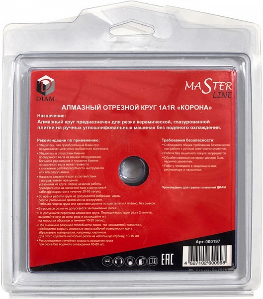 Цена и технические характеристики алмазного отрезного круга Diam Master Line 1A1R Корона Ceramics 125 мм: