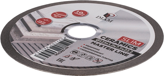 Алмазный отрезной круг Diam Master Line 1A1R Корона Ceramics Slim 125 мм (Диам Мастер Лайн 1А1Р Корона Керамикс Слим 125 мм) – ультратонкий алмазный диск для прямолинейной резки керамогранита, керамики, глазурованной плитки.