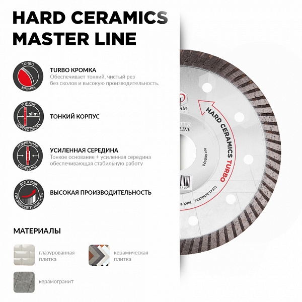 Преимущества алмазного отрезного круга Diam Master Line Turbo Hard Ceramics 125 мм: