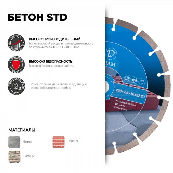 Преимущества алмазного отрезного круга Diam STD 1A1RSS Бетон 125 мм: