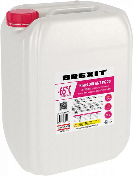 Антифриз на основе этиленгликоля для систем отопления, кондиционирования Brexit BrexCoolant PG 20, 20 кг (Брекзит БрекзКулант ПГ 20, 20 кг) предназначен для использования в системах отопления закрытого и открытого типа (домов, стадионов, производственных помещений), кондиционирования и холодильных установок.