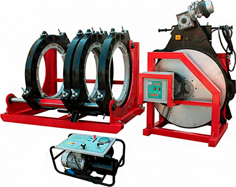 Аппарат для стыковой сварки полиэтиленовых труб Voll V-Weld G1000 (Волл В-Велд Г1000) с гидравлическим приводом – гидравлическая стыковая сварочная машина для стыковой сварки пластиковых (полиэтиленовых, полипропиленовых и других полимерных) труб напорных трубопроводов Ø 630 – 1000 мм встык трубы с трубой, а также трубы с фасонной деталью (фитингом), как в цеху, так и в полевых условиях, для монтажа и ремонта трубопроводов систем водоснабжения, газоснабжения, канализации и прочих трубных систем.