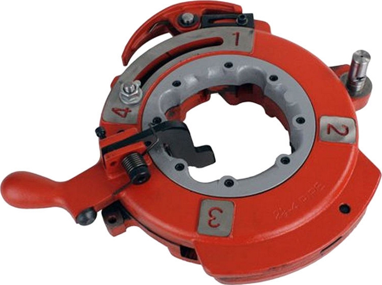 - Самооткрывающаяся с автоматическим отведением резьбонарезных гребенок для частого нарезания резьбы определенной длины: рычаг защелки автоматически отводит резьбонарезные гребенки, когда нарезана резьба нужной длины (после окончания нарезания резьбы резьбонарезные гребенки автоматически отводятся рычагом защелки)