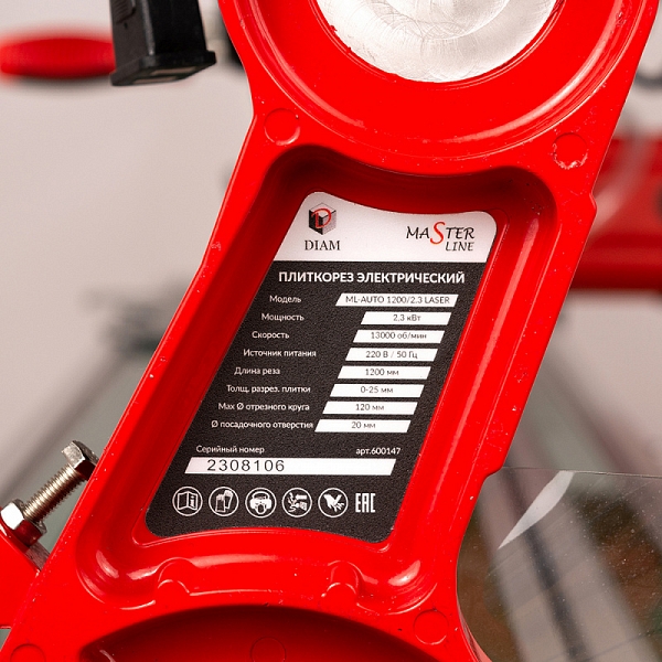 Цена и технические характеристики автоматического электрического плиткореза Diam ML-Auto 1200/2.3 Laser: