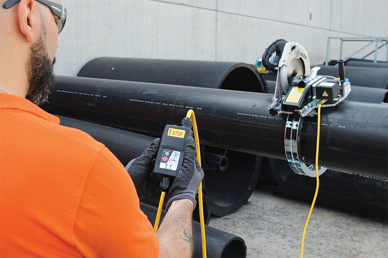 - Идеальное решение для резки пластиковых труб на стройплощадке, где безопасность остается одним из наиболее важных моментов, время резки является ключевым фактором производительности: с целью объединить эти два аспекта разработана инновационная портативная труборезная пила для резки труб на стройплощадке