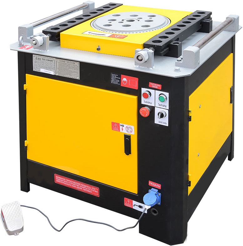 Автоматический станок для гибки арматуры с концевиком TSS GW 42R (ТСС ГВ 42Р) – электрический арматурогибочный станок с доводчиком для холодной гибки арматурной стали, сортового проката на строительных площадках, под навесом, на производствах железобетонных и металлических конструкций (дорожные плиты, блоки, панели перекрытий и т.д.), а также в производственных цехах; востребован непосредственно в строительстве – например, при создании фундаментов зданий.