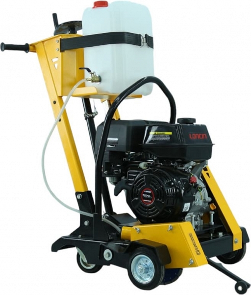 - Бензиновый двигатель Lifan 190F обеспечивает необходимую автономность работ в полевых условиях: в обычном режиме работы при глубине прямоугольного реза 6 см и ширине 1 см достигается скорость 1 м/мин по асфальту и 0,5 м/мин по бетону
