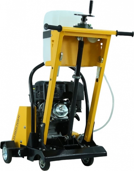 - Вращающиеся вокруг вертикальной оси задние колеса позволяют своевременно и без лишних усилий направлять в нужную сторону и вести криволинейный рез бетона, железобетона, асфальта, повторяя изгиб трещины