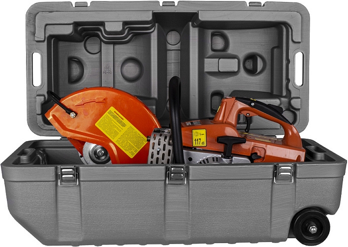 - Кейс из противоударного пластика для хранения оснащен колесами для удобной транспортировки
