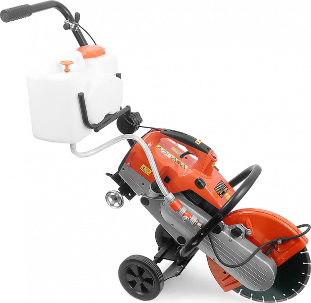 - Подача воды в зону реза: в зависимости от установленного отрезного диска, может работать как с подачей воды, так и без нее