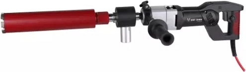 Бесщеточная дрель для сухого алмазного сверления с микроударом Bycon DB-132 (Байкон ДБ-132) – алмазная дрель с микроударом для сухого алмазного бурения отверстий Ø 10 – 102 мм в бетоне, железобетоне, "легком" бетоне, шлакобетоне, кирпиче и других особенно твердых материалах при высокой рабочей скорости; как с использованием станины, так и "с рук"; для профессионального использования. Отличный вариант как для монтажников кондиционеров, так и для электриков. С дополнительными переходниками позволяет работать как алмазными коронками стандартной длины, так и коронками для подрозетников.