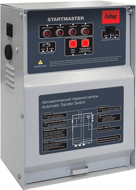 Блок автоматики Fubag StartMaster BS 11500 D (Фубаг СтартМастер 11500 Д) в новом корпусе, предназначен для включения автономных электростанций при падении напряжения в центральной сети. В режиме ожидания осуществляет постоянную подзарядку бортового аккумулятора от сети.