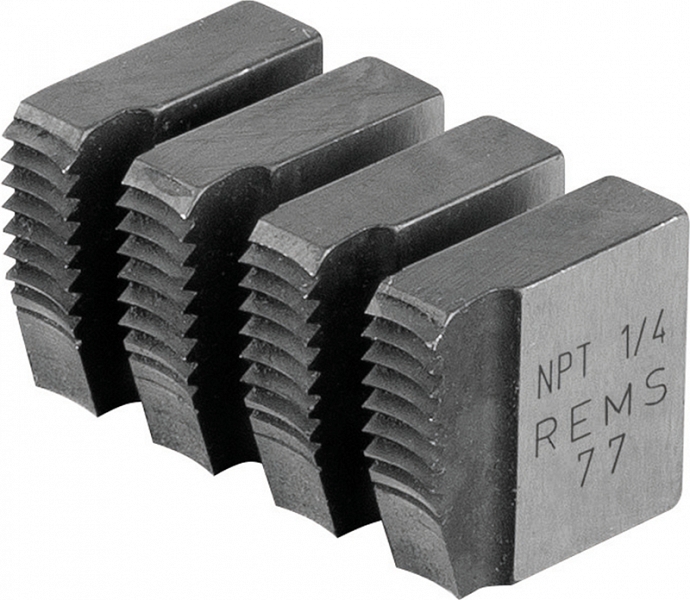 Быстросменная резьбонарезная головка Rems Eva NPT 1/4" (Ремс Ева НПТ 1/4") предназначена для нарезки правой трубной конической резьбы NPT (Taper Pipe Thread ASME B1.20.1) на стальных трубах Ø 1/4" с применением ручных и электрических резьбонарезных трубных клуппов Ева, Амиго, Амиго 2, Амиго 2 Компакт.