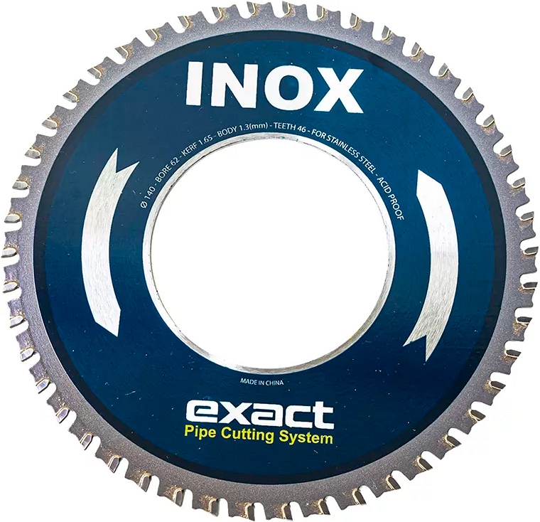 Диск отрезной по нержавеющей стали Exact Inox 140 (Экзакт Инокс 140) – недавно разработанный пильный диск, обеспечивающий наилучшие результаты резки труб из самых сложных материалов. Предназначен специально для резки труб из нержавеющей и кислотостойкой стали.