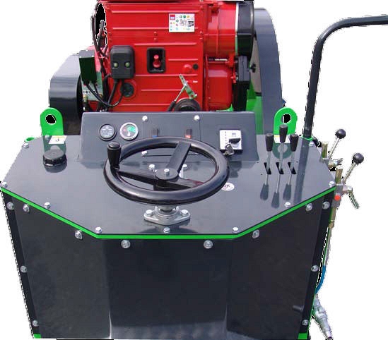 - Гидравлически выдвигаемое опорное колесо способствует удобному передвижению швонарезчика, а также позволяет производить корректировку направления движения