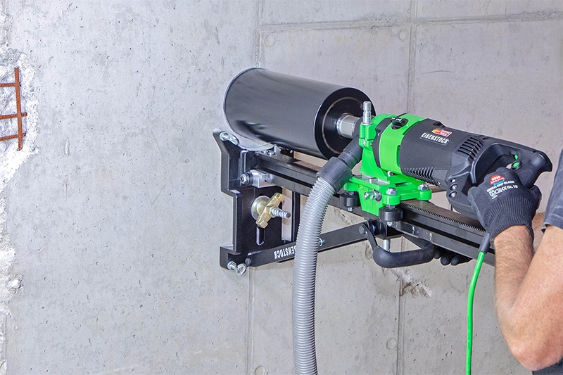 Дрель для сухого алмазного бурения с микроударом Eibenstock ESD 162 (Айбеншток ЕСД 162) предназначена для сухого сверления отверстий Ø 82 – 162 мм в особо твердых материалах, например, таких, как: железобетон; Ø 82 – 202 мм в материалах, например, таких, как: сильноуплотненный силикатный кирпич и кирпичная кладка; с высокой рабочей скоростью; идеальное решение для бурения скважин, где условия на площадке не позволяют проводить мокрое сверление (полые потолки и т. д. / предотвращение повреждения водой).