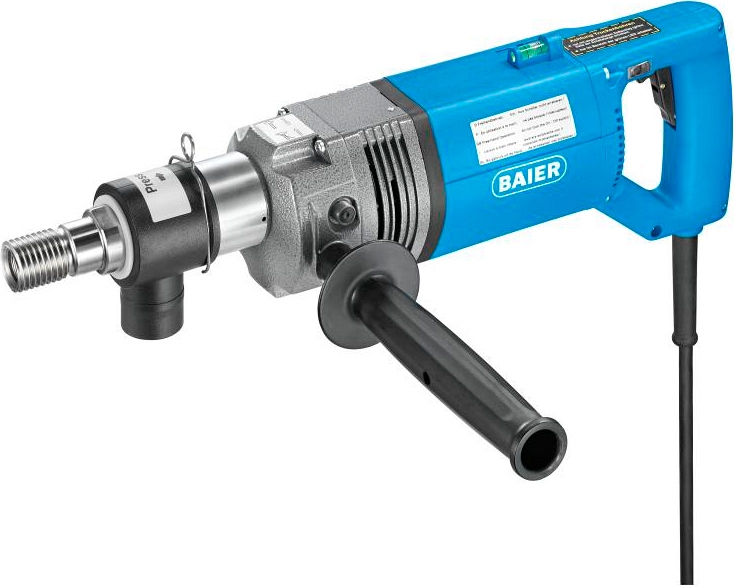Дрель с микроударом для алмазного сверления Baier BDB 825 (Байер БДБ 825) с функцией мягкого удара предназначена для точного ручного и стационарного (со станиной) сухого колонкового бурения отверстий Ø 60 – 200 мм в бетоне, железобетоне, камне, кирпиче без подачи воды.