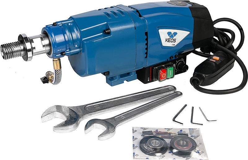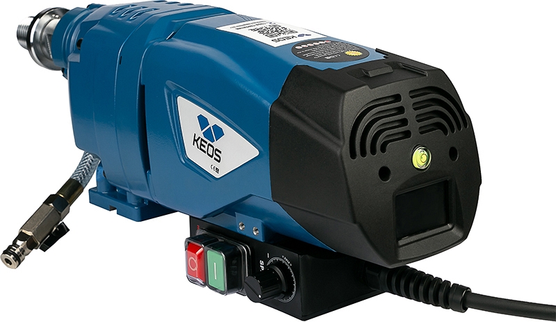Двигатель алмазного бурения Keos KS-250 (Кеос КС-250) предназначен для сверления бетона, железобетона, кирпича, асфальта и других твердых материалов алмазными коронками Ø до 250 мм с использованием стойки (штатива).