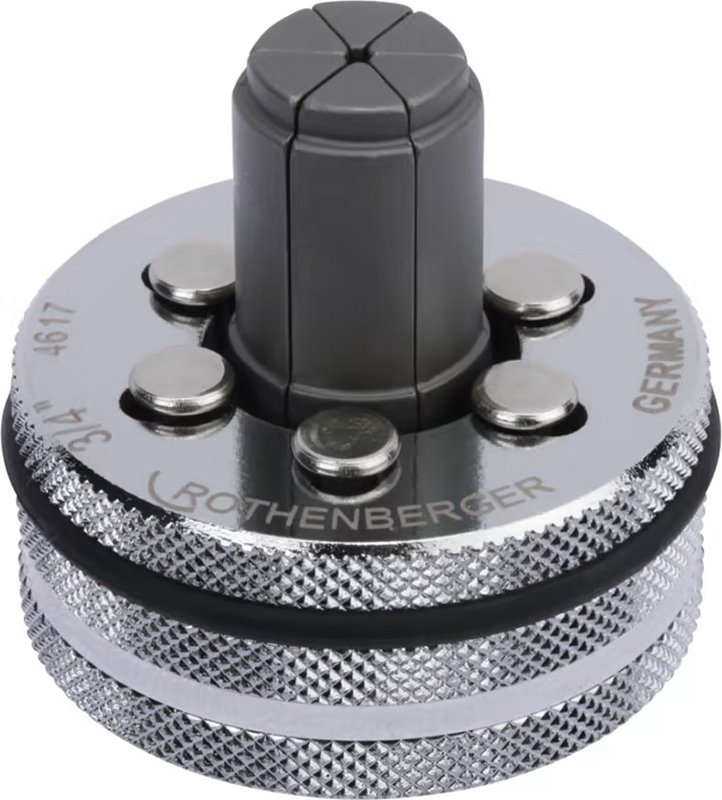 Экспандерная головка Rothenberger Rolock 3/4"×1,2 мм (Ротенбергер Ролок 3/4"×1,2 мм) – клепаная расширительная насадка для расширения мягких и полутвердых медных, мягких алюминиевых, мягких прецизионных и инструментальных стальных, мягких нержавеющих стальных труб Ø 3/4", толщиной стенки до 1,2 мм, для изготовления точных муфтовых соединений в соответствии с нормами DVGW / DIN / ГОСТ и Gas de France.