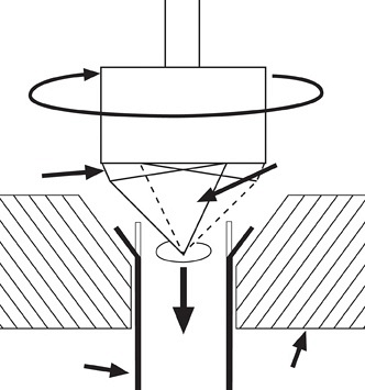 - Эксцентриково установленный в игольчатых подшипниках развальцовывающий конус из закаленной стали вращается для получения равномерной пластической деформации металла, обеспечивая однородность стенок раструба без наволакивания и образования трещин