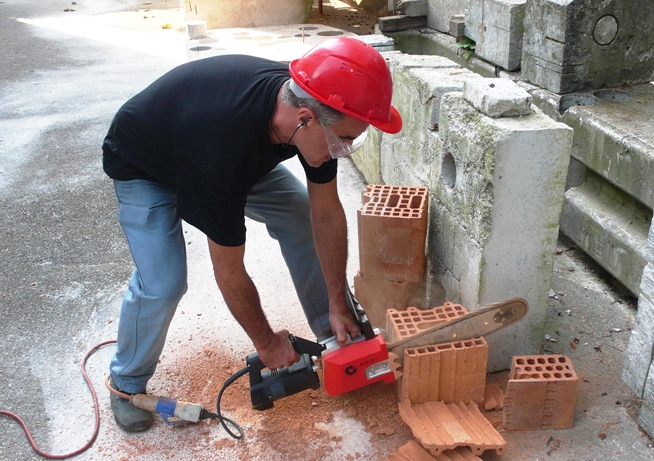 – Может также использоваться для работы вручную: для резки кирпича, блоков и т.д. или для отделочных работ