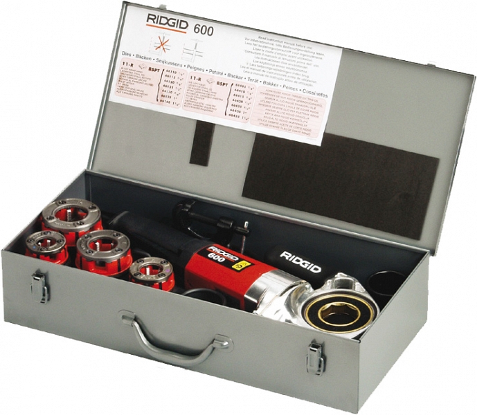 Модель снята с производства! Переносной ручной электрический резьбонарезной клупп (электроклупп) Ridgid 600 (Риджид 600) предназначен для нарезки резьбы на трубах Ø 1/8" – 1 1/4" (6 – 32 мм) с использованием резьбонарезных головок 11-R. Идеален для применения на рабочих площадках, например, во время монтажа газопроводных труб.