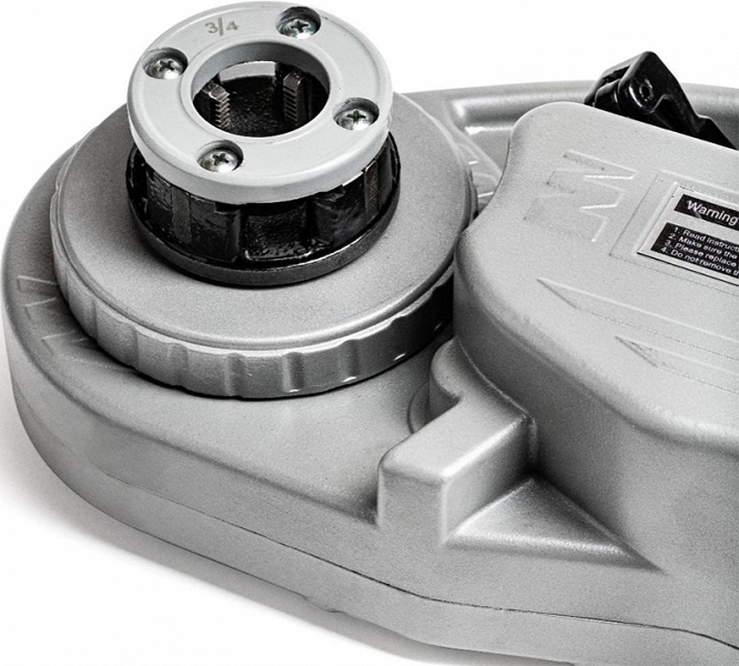 - Уникальная система быстрой фиксации обеспечивает быструю установку и замену резьбонарезных головок