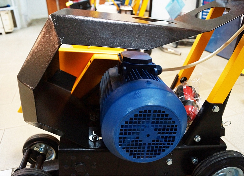 – Легкая и плавная регулировка глубины реза до 100 мм - Защитный кожух для защиты двигателя от падающего на него шлама – специальное ограждение двигателя: при резке мягкой кровли часто случается, что битумная крошка и пыль попадают на корпус двигателя и, расплавляясь, образуют пленку, которая резко уменьшает теплообмен и приводит к перегреву двигателя или становится причиной поломки его частей и выхода двигателя из строя