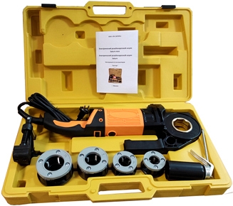 - Коллекторный двигатель через червячную передачу передает усилие на оправку резьбонарезной головки