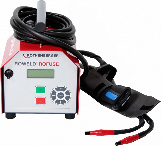 Электромуфтовый сварочный аппарат без протоколирования Rothenberger Roweld Rofuse 2.0 (Ротенбергер Ровелд Рофьюз 2.0) – аппарат для электромуфтовой сварки пластиковых полимерных (полиэтиленовых (пэ, пнд) и полипропиленовых (пп)) труб Ø до 1200 мм с помощью электрофитингов (электрических муфт с закладным нагревательным элементом), с напряжением на выходе 8 – 48 В, широко применяется на стройплощадках при монтаже инженерных коммуникаций и аварийно-восстанавительных работах на трубопроводах.