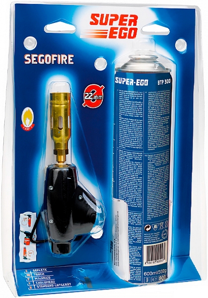 Газовая горелка для пайки с баллончиком BTP 300 Super-Ego Segofire (Супер-Эго Сегофайер) предназначена для профессиональной пайки труб Ø до 16 мм твердым припоем, Ø до 22 мм мягким припоем. Используется для пайки сантехники, кондиционеров, ювелирных изделий; прокладки труб; снятия окалины; нагрева и термоусадки; бытового использования.