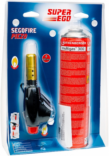 Газовая горелка для пайки с пьезоподжигом и баллончиком BTP 300 Super-Ego Segofire Piezo (Супер-Эго Сегофайер Пьезо) предназначена для профессиональной пайки труб Ø до 16 мм твердым припоем, Ø до 22 мм мягким припоем. Используется для пайки сантехники, кондиционеров, ювелирных изделий; прокладки труб; снятия окалины; нагрева и термоусадки; бытового использования.