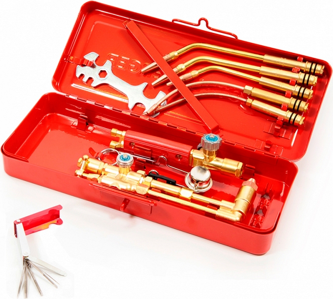 Газовая горелка и газовый резак Rothenberger RE 17 (Ротенбергер РЕ 17) – универсальный газовый набор для сварки (рабочая область 0,5 – 14 мм), резки (рабочая область 12 – 100 мм), пайки твердым припоем и нагрева (рабочая область 3 – 100 мм).