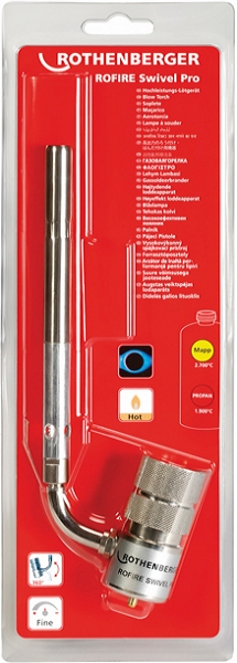 Газовая горелка на баллончик для пайки Rothenberger Rofire Swivel Pro Cyclone (Ротенбергер Рофайер Свифл Про Циклон) – ручная циклонная горелка для пайки труб Ø до 18 мм твердым припоем, Ø до 42 мм мягким припоем.