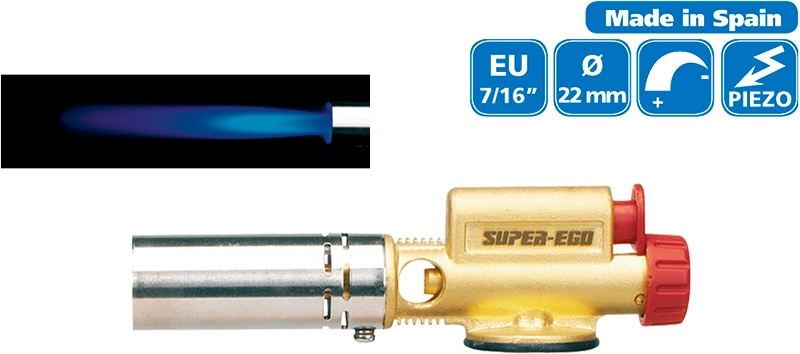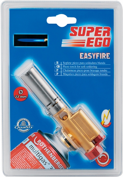 Газовая горелка на баллончик с пьезоподжигом для пайки Super-Ego Easy-Fire (Супер-Эго Изи-Файер) предназначена для профессиональной пайки труб Ø до 15 мм твердым припоем, Ø до 22 мм мягким припоем. Используется для профессионального использования при прокладке труб, холодильных систем и систем кондиционирования, в ювелирном деле, а также для усадки.