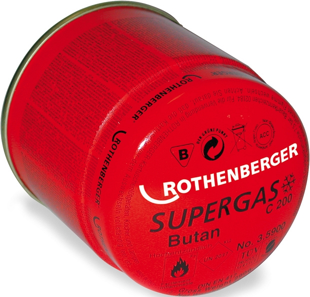- Газовый баллончик для горелки Supergas C 200 (дополнительная опция!): с бутаном, содержит долю пропана, также подходит для работы при низких температурах, соединение под прокалывание, произведен в соответствии с EN 417