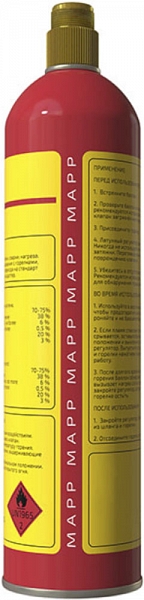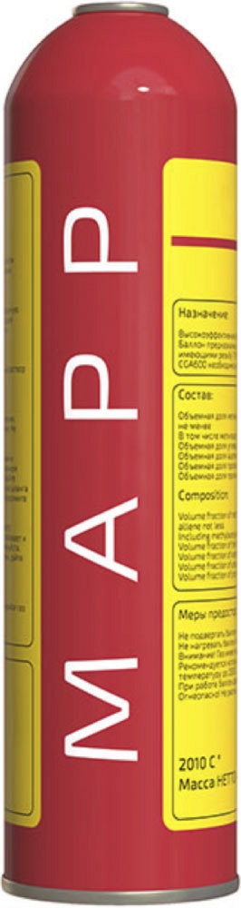 Газовый баллон для горелки Rotorica Ro-Mapp (Роторика Ро-Мапп) предназначен для сварки, пайки твердым припоем, нагрева медных труб при монтаже системы вентиляции, кондиционирования, отопления; применяется в составе сварочного поста с кислородом; заменяет ацетилен при сварочных работах.