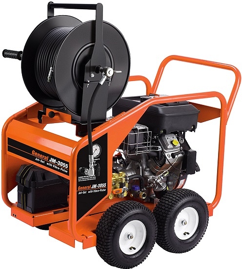 Бензиновый автономный мобильный каналопромывочный аппарат General Pipe Cleaners JM-3055 (Дженерал Пайп Клинерс ДжейМ-3055) на тележке предназначен для прочистки канализационных труб, сточных трубопроводов Ø 50 – 300 мм (2" – 12"). Имеет режим системы пульсации Vibra-Pulse (Вибра-Пульс), помогая гибкому шлангу продвигаться по трубопроводам, пробивая засоры, образованные шламом, мылом, жиром и отложениями. Подходит для крупных коммерческих и промышленных объектов.