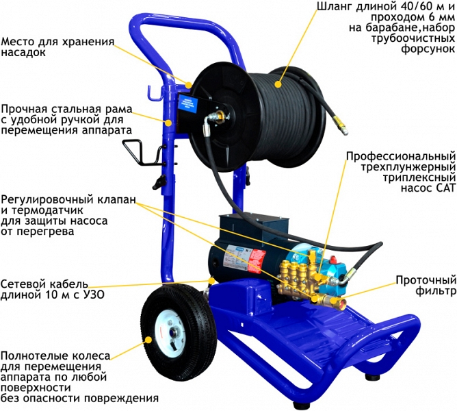 Высоконапорный водоструйный аппарат Посейдон – доступное и современное решение проблем связанных с очисткой разных загрязнений внутридомовых труб, стоков, сливов, водосточных труб, наружных поверхностей, мойки автомобилей и водоабразивной очистки поверхностей. С применением специализированных форсунок способен очищать канализационные сети с тяжелыми загрязнениями. Широкий спектр применения во всех отраслях промышленности, сельского хозяйства, ЖКХ и строительства, автосервиса: