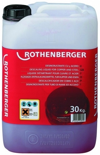 Химическое средство, концентрат для удаления накипи, ржавчины Rothenberger Rocal (Ротенбергер Рокал) подходит для промывки и удаления накипи для медных и стальных труб, систем отопления, радиаторов, теплообменников, отложения жесткости воды и т.д.