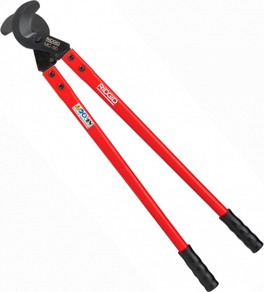 Модель снята с производства! Кабелерез ручной рычажный Ridgid MC-50 (Риджид МЦ-50) – ручные кабельные ножницы для резки медных и алюминиевых проводниковых материалов многожильных кабелей Класса 2 и гибких кабелей Класса 5 по DIN VDE 57295, сечением до 500 мм² без изоляции и диаметром до 50 мм с изоляцией.
