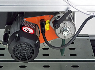 - Надежный однофазный электрический двигатель 2,2 кВт с термо- и электрозащитой (трехфазный электрический двигатель поставляется по запросу!). Электрические провода проходят внутри направляющей рельсы для избежания попадания в зону резки