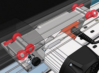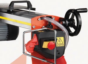 - Мощный трехфазный электрический двигатель 4 кВт с термо- и электрозащитой. Электрические провода проходят внутри направляющей рельсы для избежания попадания в зону резки