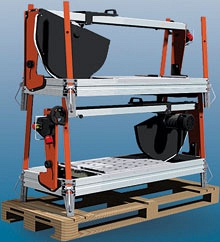 – Система съемных, регулируемых по высоте, ножек обеспечивает большую жесткость и устойчивость во время резки, упрощает транспортировку и хранение (минимизирует занимаемое пространство), а также позволяет размещать 2 камнерезных станка на одном паллете - Набор колес для удобства эксплуатации и транспортировки