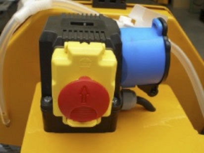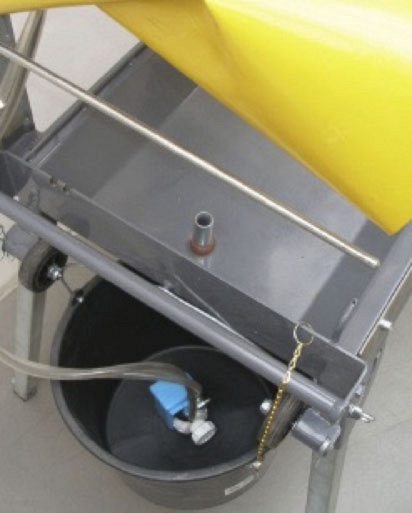 – Электрический погружной водяной насос постоянно соединен к выключателю, подает воду прямо из водяной ванны с переливной пробкой или из подвешенного на раме ведра
