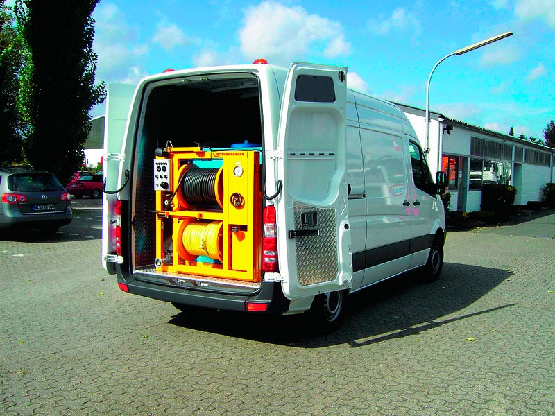Каналопромывочная машина Kroll ROJET 100/200 Basic (Кролл РОДЖЕТ 100/200 Бейсик) для фургона – гидродинамическая установка, устройство для прочистки труб Ø 40 – 600 мм водой под высоким давлением для наружных сетей.