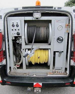 - Прочистка труб от Ø 40 мм. Имеется передвижной барабан со шлангом для труб малых диаметров